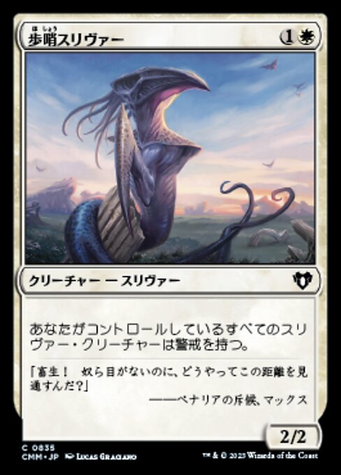 |  Variations— Parts— | Slivoïde sentinelle2 / 2 Les créatures Slivoïde que vous contrôlez ont la vigilance.