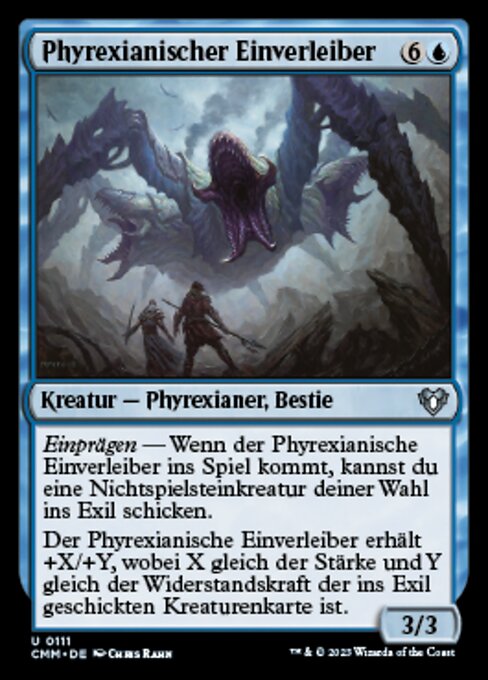 ![]() Variations— Parts— | ファイレクシアの摂取者3 / 3 刻印 ― ファイレクシアの摂取者が戦場に出たとき、トークンでないクリーチャー1体を対象とする。それを追放してもよい。 ファイレクシアの摂取者は+X/+Yの修整を受ける。Xはその追放されたクリーチャー・カードのパワーに等しく、Yはその追放されたクリーチャー・カードのタフネスに等しい。