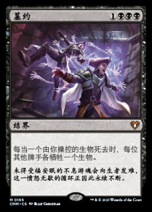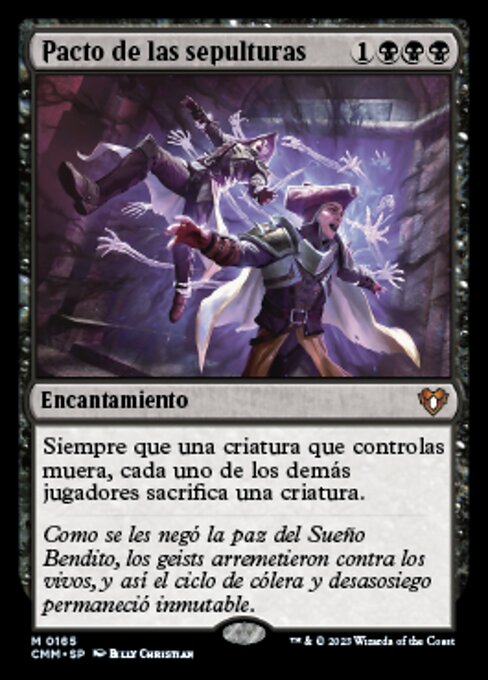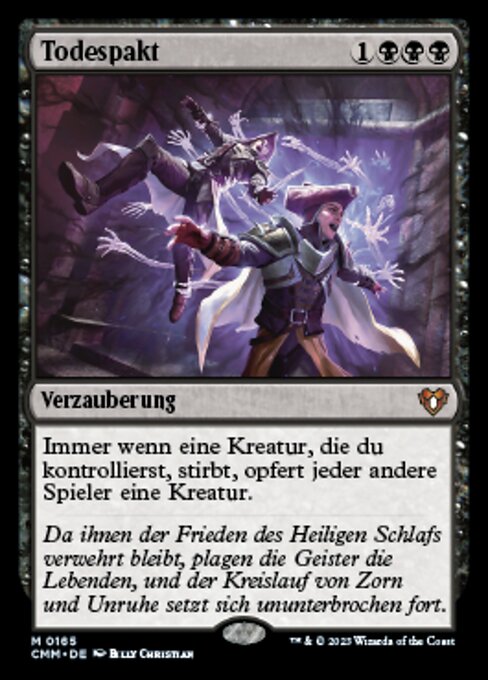 ![]() Variations : 2Parts— | 墓穴までの契約あなたがコントロールしているクリーチャー1体が死亡するたび、あなた以外の各プレイヤーはそれぞれクリーチャー1体を生け贄に捧げる。