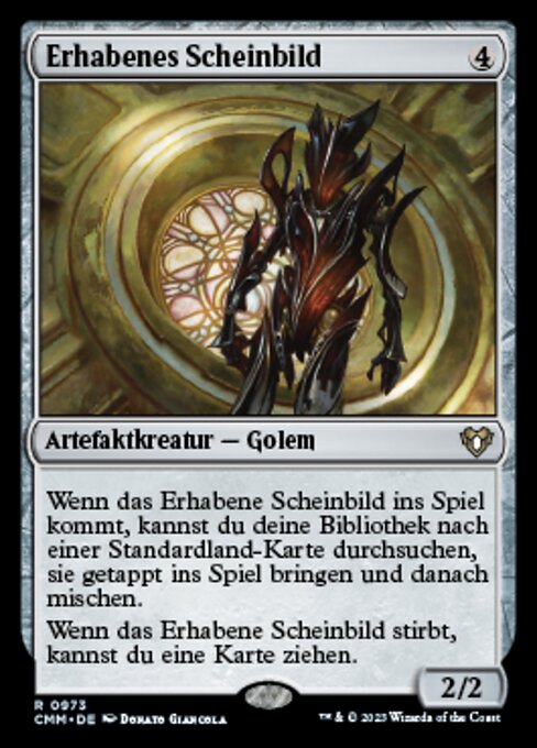 |  Variations— Parts— | 真面目な身代わり2 / 2 真面目な身代わりが戦場に出たとき、「あなたのライブラリーから基本土地・カード1枚を探し、タップ状態で戦場に出す。その後、ライブラリーを切り直す。」を選んでもよい。 真面目な身代わりが死亡したとき、カード1枚を引いてもよい。