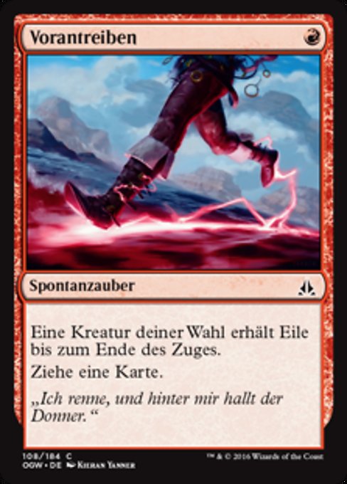 ![]() Variations— Parts— | VorantreibenEine Kreatur deiner Wahl erhält Eile bis zum Ende des Zuges. Ziehe eine Karte.