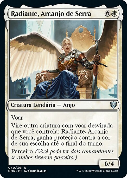 ![]() Variations : 1Parts— | Radiant, Serra Archangel6 / 4 Flying Tap another untapped creature you control with flying: Radiant gains protection from the color of your choice until end of turn. Partner (You can have two commanders if both have partner.)