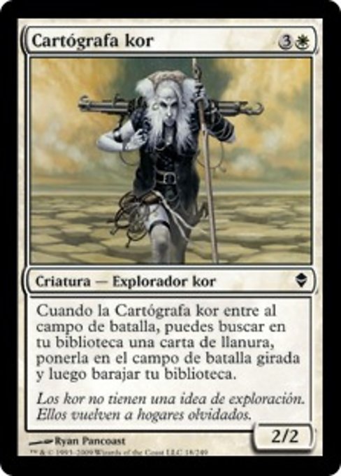 ![]() Variations : 1Parts— | Cartógrafa kor2 / 2 Cuando la Cartógrafa kor entre al campo de batalla, puedes buscar en tu biblioteca una carta de Llanura, ponerla en el campo de batalla girada y luego barajar tu biblioteca.