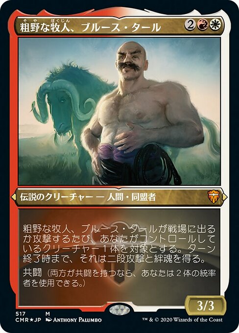 ![]() Variations— Parts— | Bruse Tarl, berger rustre3 / 3 À chaque fois que Bruse Tarl, berger rustre arrive sur le champ de bataille ou attaque, une créature ciblée que vous contrôlez acquiert la double initiative et le lien de vie jusqu'à la fin du tour. Partenariat (Vous pouvez avoir deux commandants si les deux ont le partenariat.)