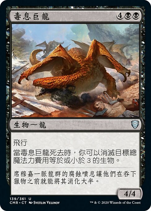 ![]() Variations— Parts— | Drago Venefico4 / 4 Volare Quando il Drago Venefico muore, puoi distruggere una creatura bersaglio con costo di mana convertito pari o inferiore a 3.