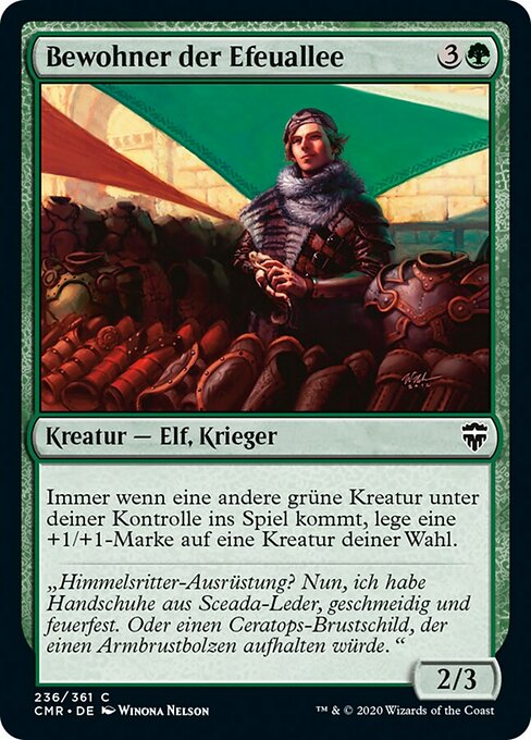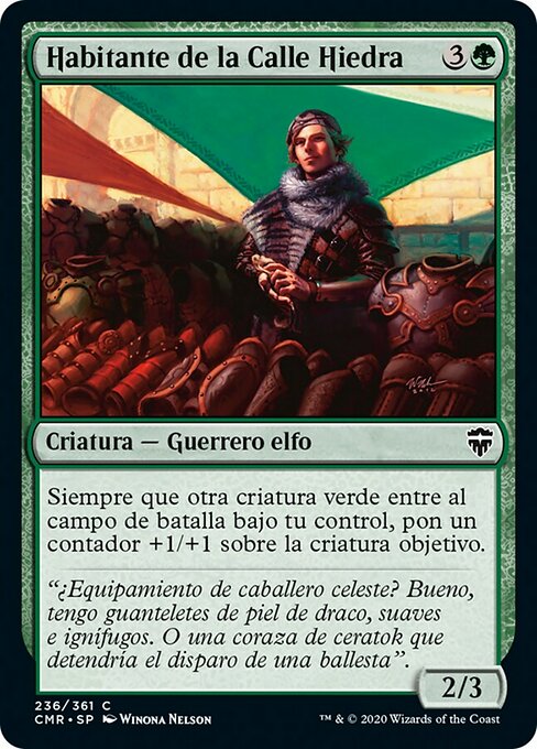 |  Variations— Parts— | Abitante di Strada dell'Edera2 / 3 Ogniqualvolta un'altra creatura verde entra nel campo di battaglia sotto il tuo controllo, metti un segnalino +1/+1 su una creatura bersaglio.