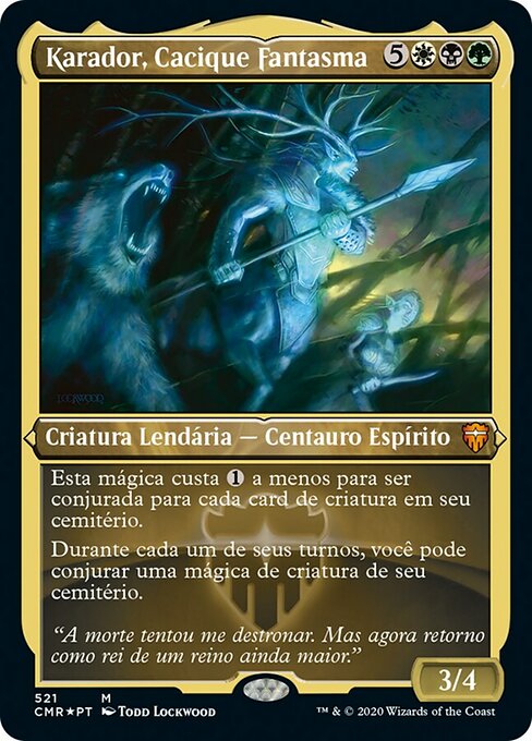 ![]() Variations— Parts— | Karador, Capitano Fantasma3 / 4 Questa magia costa Durante ogni tuo turno, puoi lanciare una magia creatura dal tuo cimitero.