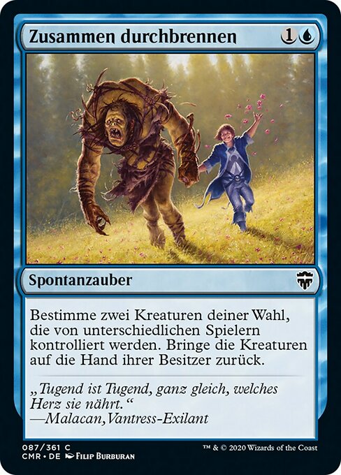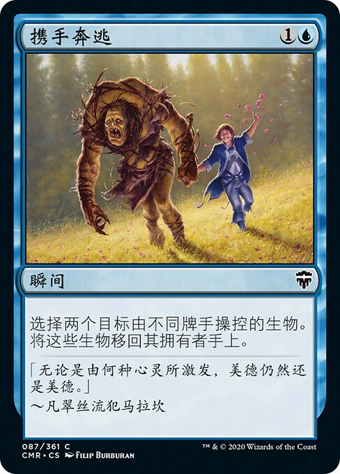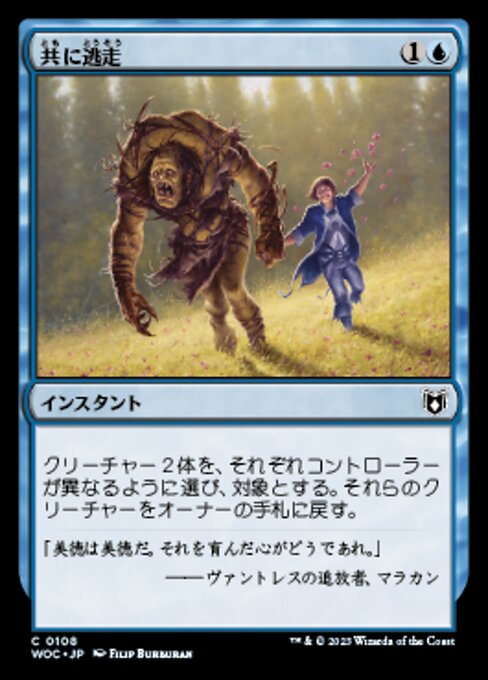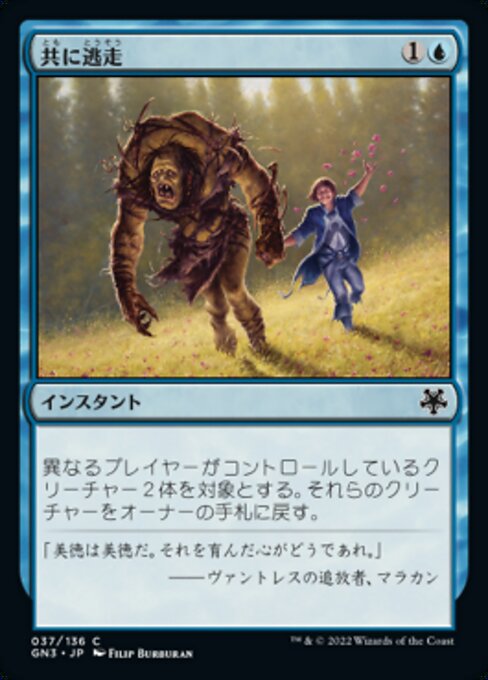 |  Variations— Parts— | 共に逃走異なるプレイヤーがコントロールしているクリーチャー2体を対象とする。それらのクリーチャーをオーナーの手札に戻す。
