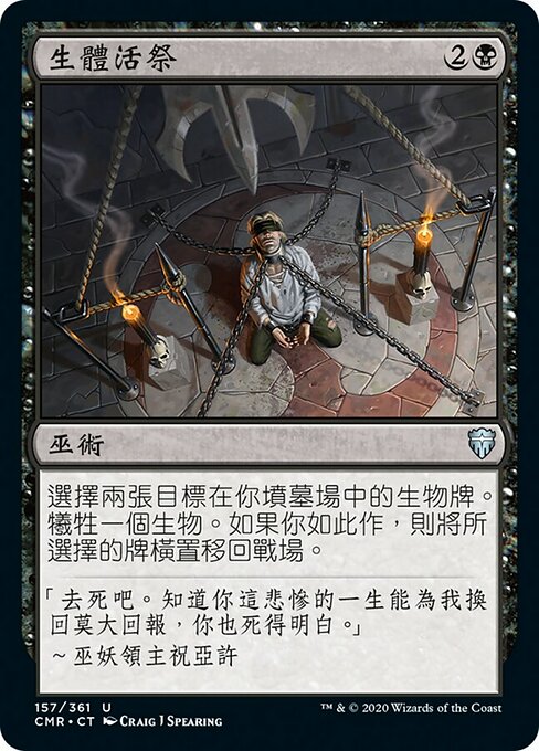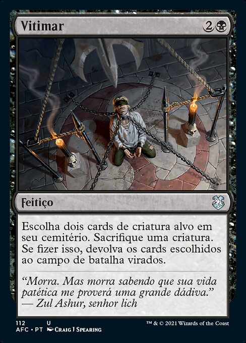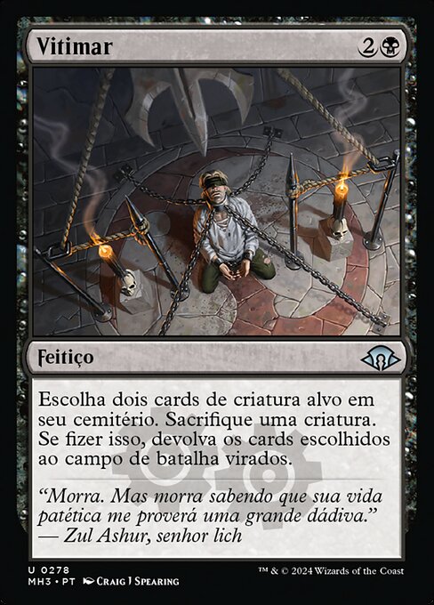 |  Variations— Parts— | VitimarEscolha dois cards de criatura alvo em seu cemitério. Sacrifique uma criatura. Se fizer isso, devolva os cards escolhidos ao campo de batalha virados.