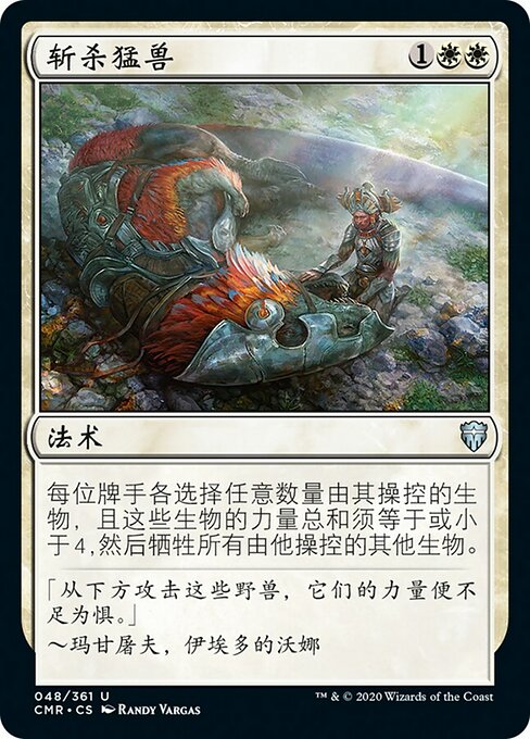 ![]() Variations— Parts— | Matar os FortesCada jogador escolhe qualquer número de criaturas que ele controla com total de poder igual ou inferior a 4 e, em seguida, sacrifica todas as outras criaturas que ele controla.