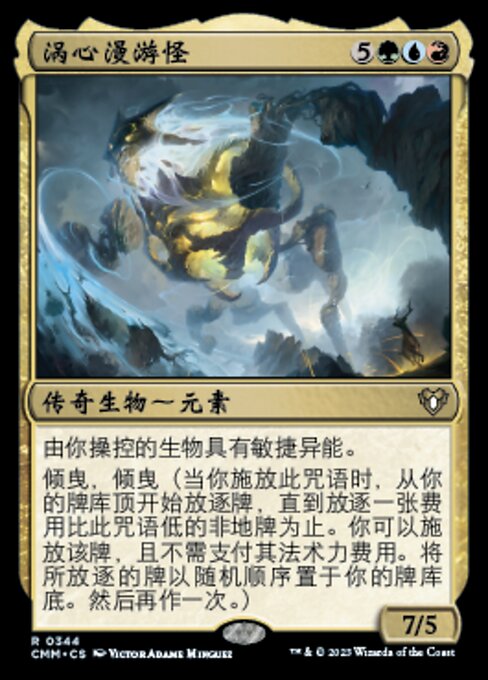 ![]() Variations— Parts— | 涡心漫游怪7 / 5 由你操控的生物具有敏捷异能。 倾曳,倾曳(当你施放此咒语时,从你的牌库顶开始放逐牌,直到放逐一张费用比此咒语低的非地牌为止。你可以施放该牌,且不需支付其法术力费用。将所放逐的牌以随机顺序置于你的牌库底。然后再作一次。)
