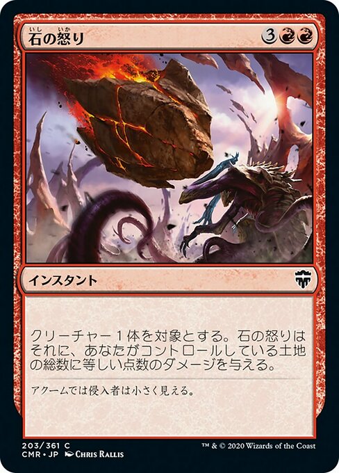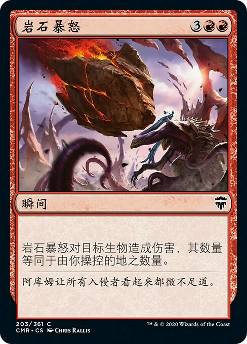 ![]() Variations— Parts— | 岩石暴怒岩石暴怒對目標生物造成傷害,其數量等同於由你操控的地之數量。