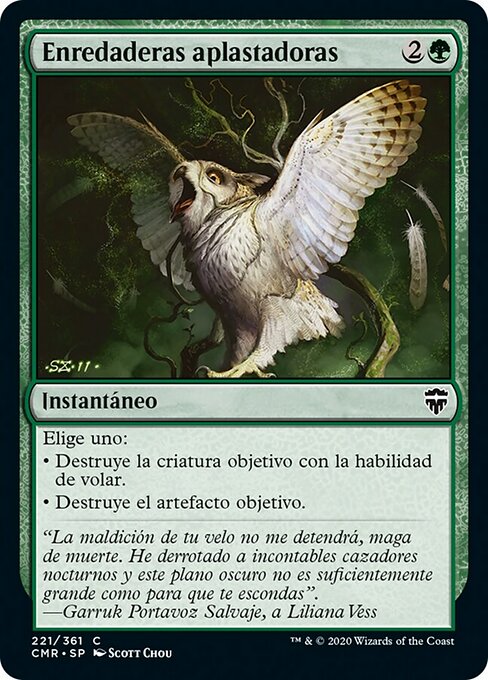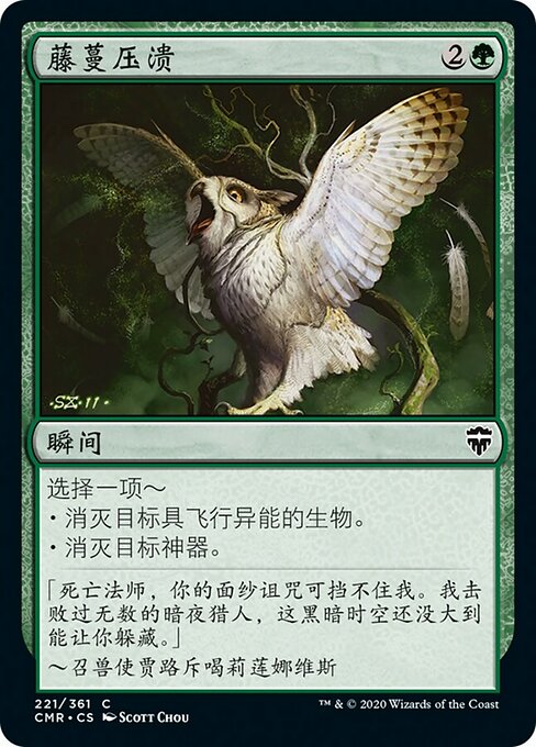 ![]() Variations— Parts— | 藤蔓壓潰選擇一項~ •消滅目標具飛行異能的生物。 •消滅目標神器。