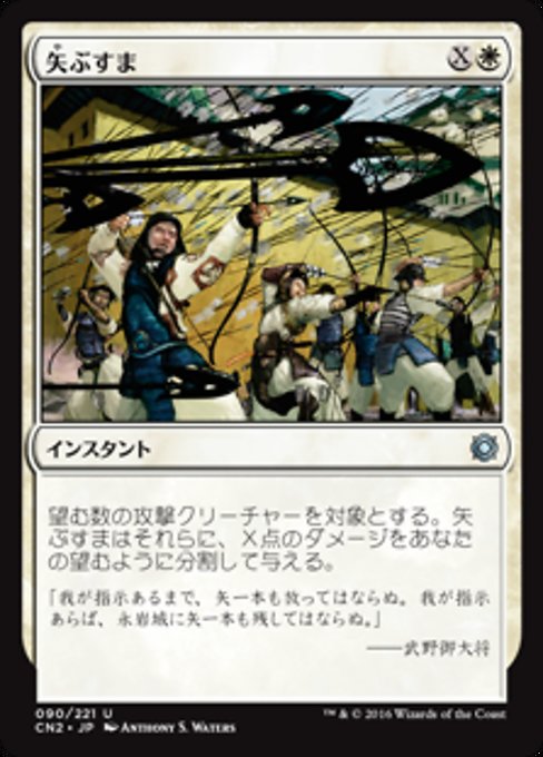 ![]() Variations— Parts—  | Hail of ArrowsHail of Arrows deals X damage divided as you choose among any number of target attacking creatures.