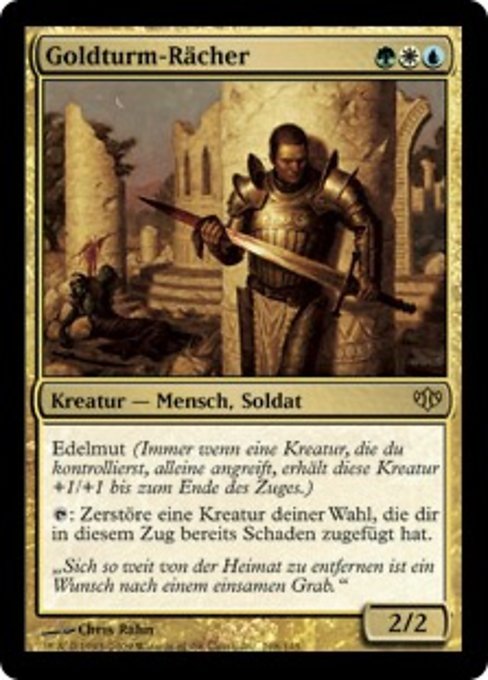 |  Variations— Parts— | Giltspire Avenger2 / 2 Exalted (Whenever a creature you control attacks alone, that creature gets +1/+1 until end of turn.)