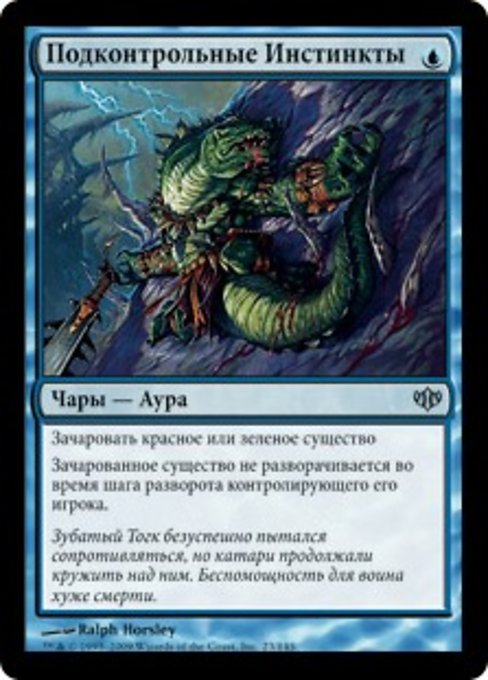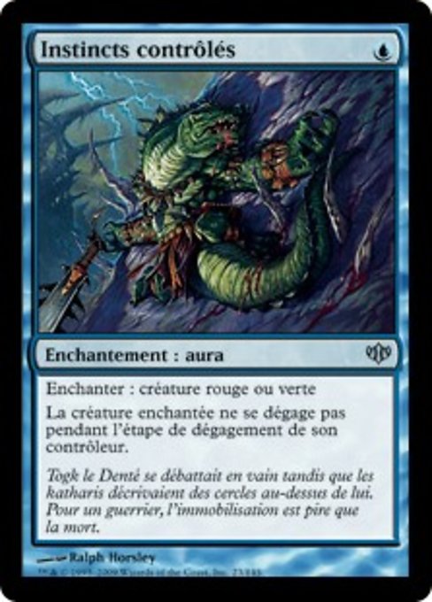 ![]() Variations— Parts— | Controlled InstinctsEnchant red or green creature Enchanted creature doesn't untap during its controller's untap step.