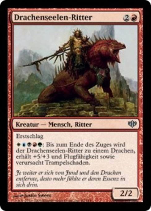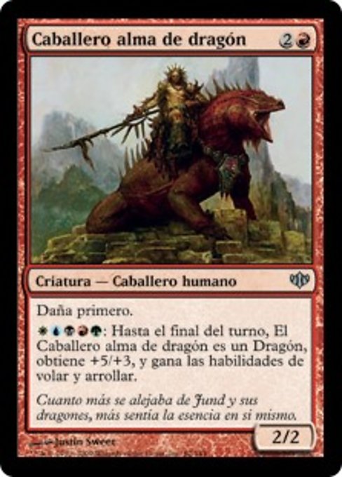 LegalitiesLegal Duel Penny Predh Legacy Modern Pauper Vintage Commander Oathbreaker Paupercommander Not Legal Brawl Future Alchemy Pioneer Historic Standard Timeless Gladiator Oldschool Premodern Standardbrawl RulingsWhen Dragonsoul Knight’s activated ability resolves, Dragonsoul Knight will gain flying and trample in addition to its other abilities. However, becoming a Dragon will make it lose all other creature types. It will no longer be a Human or a Knight.