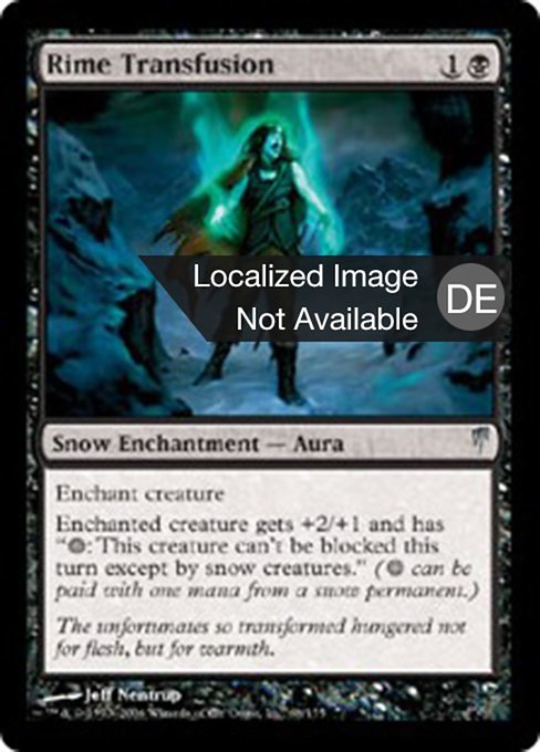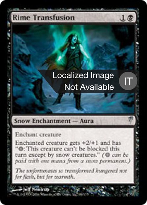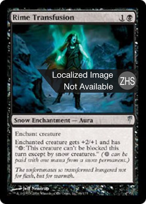 ![]() Variations— Parts— | Rime TransfusionEnchant creature Enchanted creature gets +2/+1 and has "