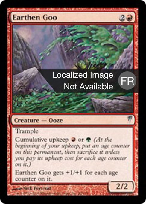 ![]() Variations— Parts— | Earthen Goo2 / 2 Trample Cumulative upkeep This creature gets +1/+1 for each age counter on it.