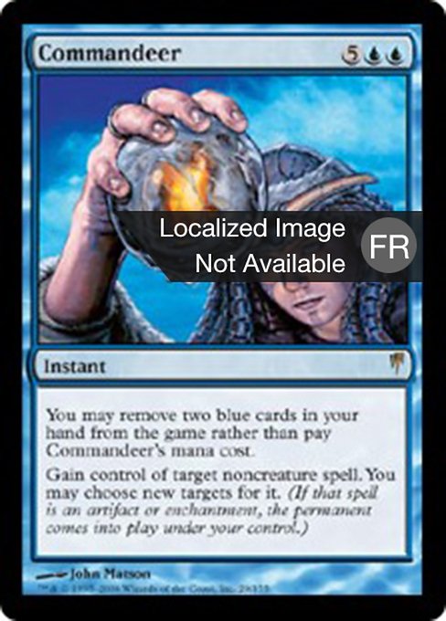 |  Variations— Parts— | 霸占你可以将你手上两张蓝色牌移出对战,而不支付霸占的法术力费用。 获得目标非生物咒语的操控权。 你可以为它选择新的目标。 (如果该咒语是神器或结界,则此永久物会在你的操控下进场。)
