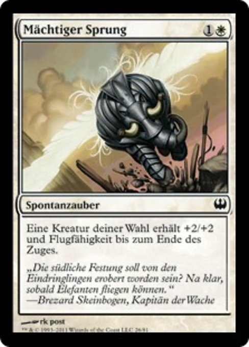 |  Variations— Parts— | Salto formidableLa criatura objetivo obtiene +2/+2 y gana la habilidad de volar hasta el final del turno.