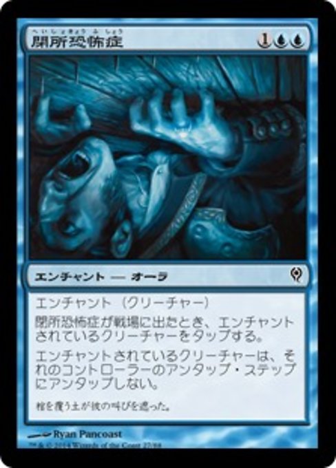![]() Variations— Parts— | 閉所恐怖症エンチャント(クリーチャー) 閉所恐怖症が戦場に出たとき、エンチャントされているクリーチャーをタップする。 エンチャントされているクリーチャーは、それのコントローラーのアンタップ・ステップにアンタップしない。