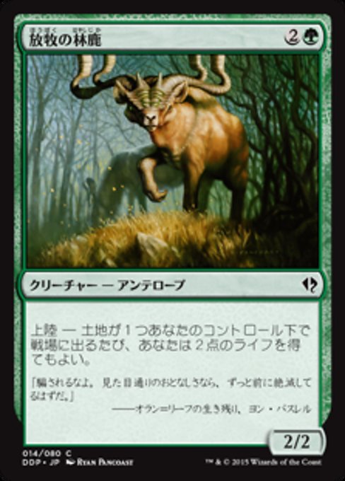 ![]() Variations— Parts—  | 放牧の林鹿2 / 2 上陸 ― 土地が1つあなたのコントロール下で戦場に出るたび、あなたは2点のライフを得てもよい。