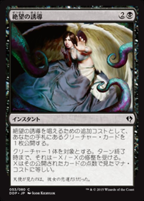 |  Variations— Parts— | Induce DespairAs an additional cost to cast this spell, reveal a creature card from your hand. Target creature gets -X/-X until end of turn, where X is the revealed card's mana value.