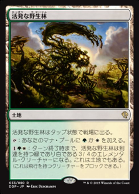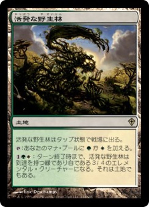 ![]() Variations— Parts— | 活発な野生林活発な野生林はタップ状態で戦場に出る。