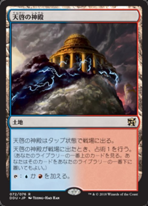 ![]() Variations— Parts— | Temple of EpiphanyThis land enters tapped. When this land enters, scry 1. (Look at the top card of your library. You may put that card on the bottom.)