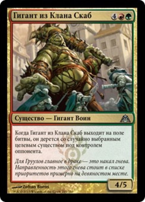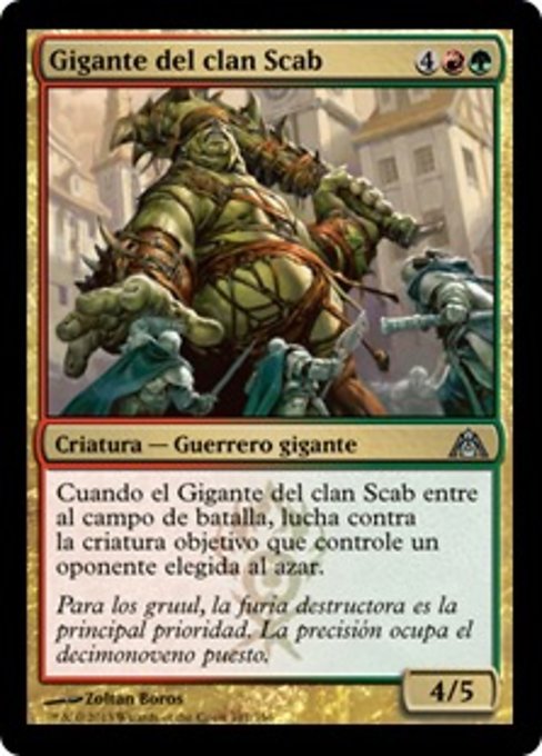 |  Variations— Parts— | Scab-Clan Giant4 / 5 When this creature enters, it fights target creature an opponent controls chosen at random.