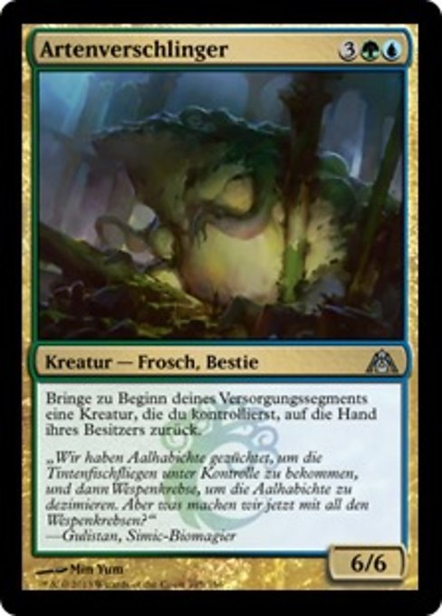 ![]() Variations— Parts— | Species Gorger6 / 6 At the beginning of your upkeep, return a creature you control to its owner's hand.