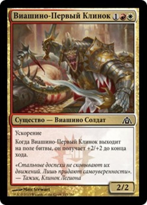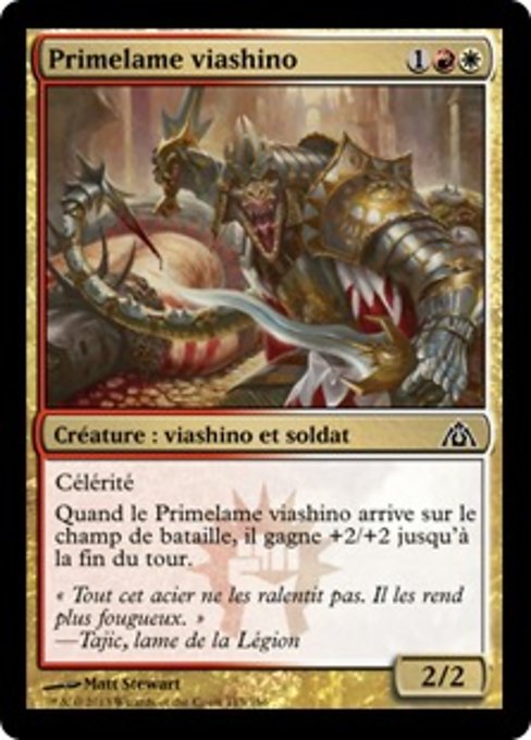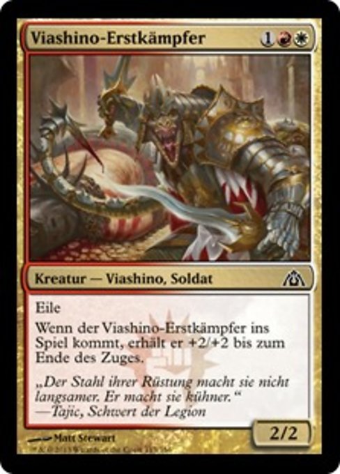 ![]() Variations— Parts— | Viashino Firstblade2 / 2 Haste When this creature enters, it gets +2/+2 until end of turn.
