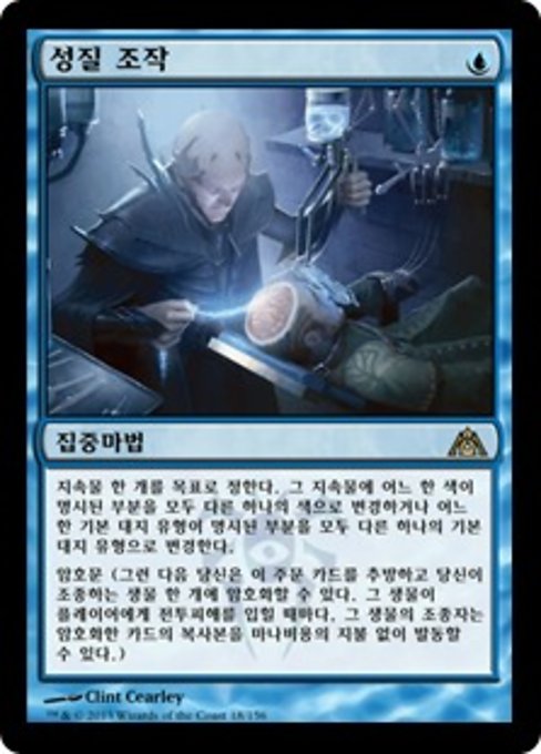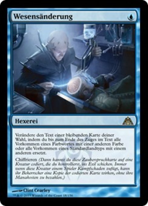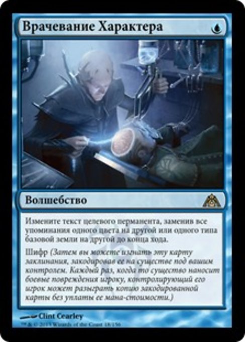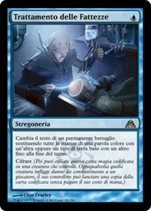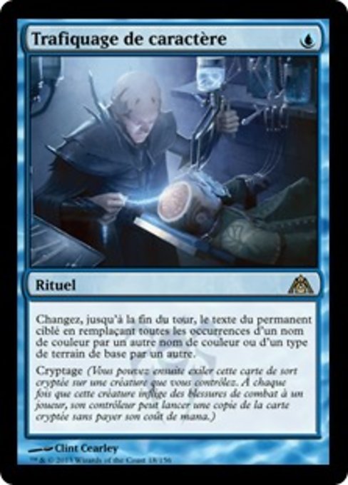 |  Variations— Parts— | Trait DoctoringChange the text of target permanent by replacing all instances of one color word with another or one basic land type with another until end of turn. Cipher (Then you may exile this spell card encoded on a creature you control. Whenever that creature deals combat damage to a player, its controller may cast a copy of the encoded card without paying its mana cost.)