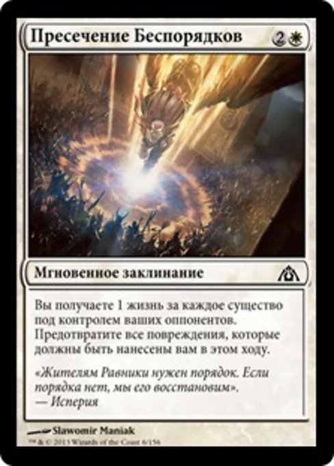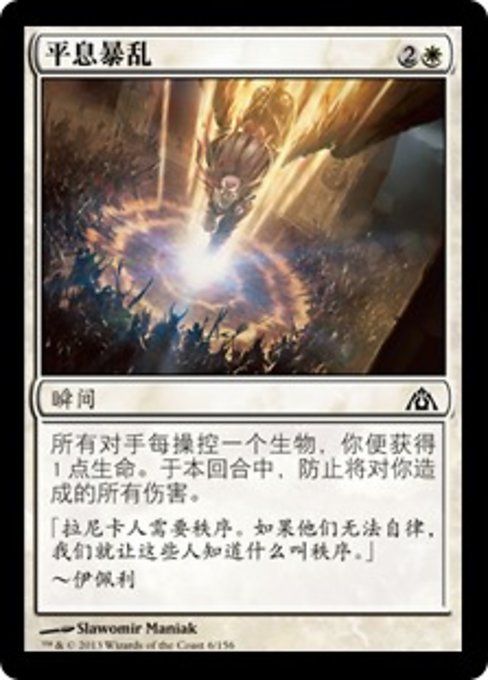|  Variations— Parts— | Riot ControlYou gain 1 life for each creature your opponents control. Prevent all damage that would be dealt to you this turn.