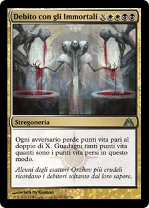![]() Variations— Parts— | Debt to the DeathlessEach opponent loses two times X life. You gain life equal to the life lost this way.