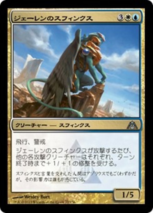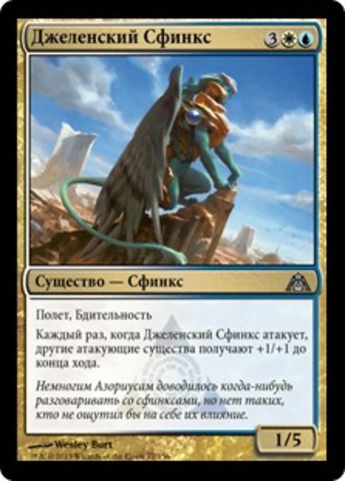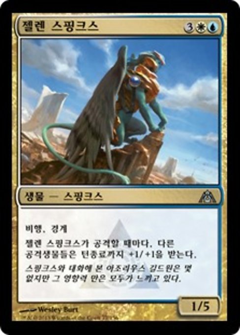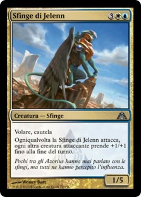|  Variations— Parts— | Jelenn Sphinx1 / 5 Flying, vigilance Whenever this creature attacks, other attacking creatures get +1/+1 until end of turn.