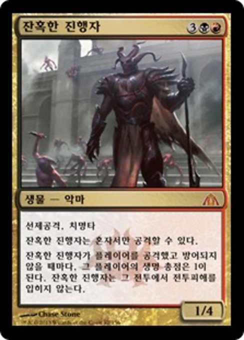 ![]() Variations— Parts— | Maestro di Crudeltà1 / 4 Attacco improvviso, tocco letale Il Maestro di Crudeltà può attaccare unicamente da solo. Ogniqualvolta il Maestro di Crudeltà attacca un giocatore e non viene bloccato, i punti vita di quel giocatore diventano 1. Il Maestro di Crudeltà non assegna danno da combattimento in questo combattimento.
