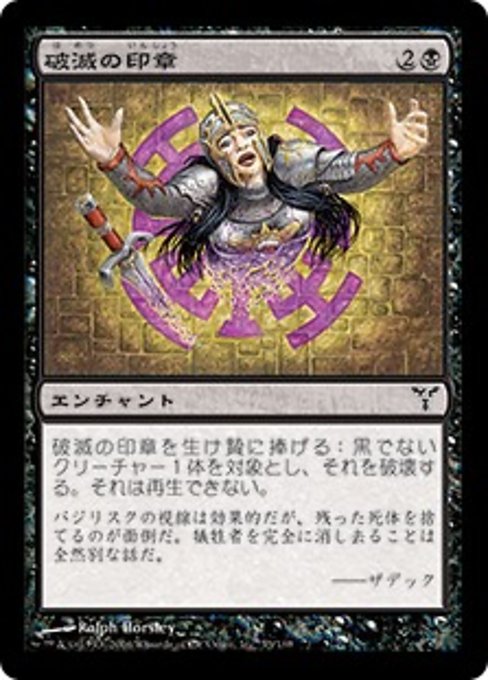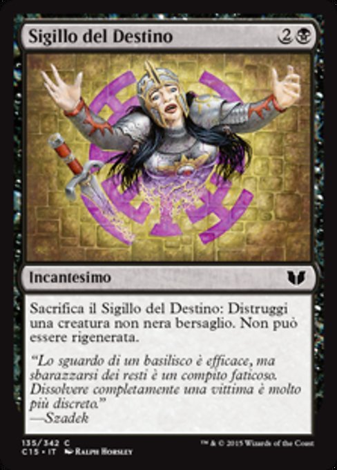 |  Variations— Parts— | Sigillo del DestinoSacrifica il Sigillo del Destino: Distruggi una creatura bersaglio non nera. Non può essere rigenerata.