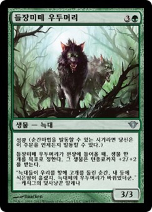 |  Variations— Parts— | Briarpack Alpha3 / 3 Flash (You may cast this spell any time you could cast an instant.) When this creature enters, target creature gets +2/+2 until end of turn.