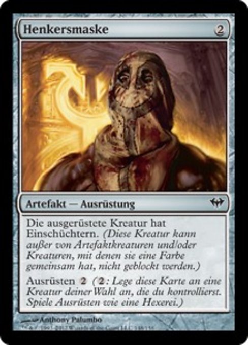 ![]() Variations— Parts— | Executioner's HoodEquipped creature has intimidate. (This creature can't be blocked except by artifact creatures and/or creatures that share a color with it.) Equip
