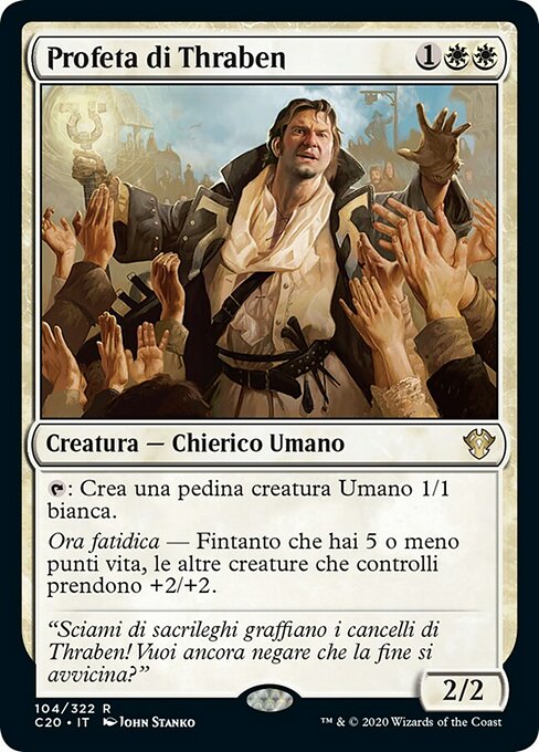 |  Variations— Parts— | Profeta di Thraben2 / 2 Ora fatidica — Fintanto che hai 5 o meno punti vita, le altre creature che controlli prendono +2/+2.
