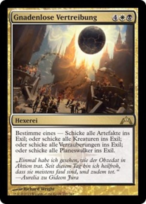 ![]() Variations— Parts— | Gnadenlose VertreibungBestimme eines — • Schicke alle Artefakte ins Exil. • Schicke alle Kreaturen ins Exil. • Schicke alle Verzauberungen ins Exil. • Schicke alle Planeswalker ins Exil.