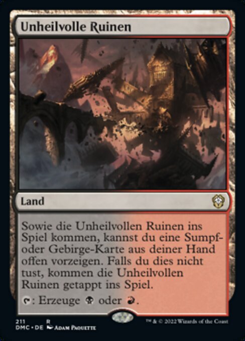LegalitiesLegal Duel Brawl Penny Legacy Modern Pioneer Vintage Historic Timeless Commander Gladiator Oathbreaker Not Legal Predh Future Pauper Alchemy Standard Oldschool Premodern Standardbrawl Paupercommander Penny RulingsIf a Swamp or Mountain is entering the battlefield from your hand at the same time as Foreboding Ruins, you may reveal the other land to have Foreboding Ruins enter untapped.