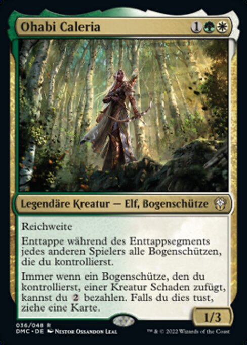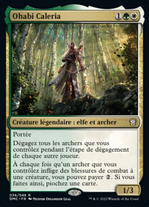 |  Variations : 1Parts— | Ohabi Caleria1 / 3 Reach Untap all Archers you control during each other player's untap step. Whenever an Archer you control deals damage to a creature, you may pay