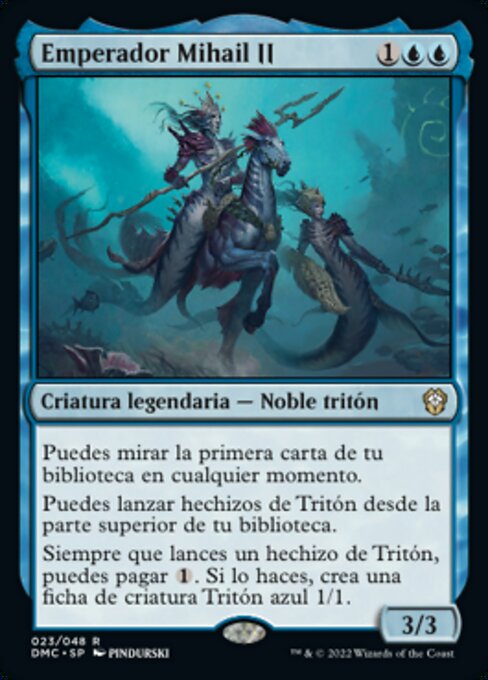 |  Variations— Parts— | Emperador Mihail II3 / 3 Puedes mirar la primera carta de tu biblioteca en cualquier momento. Puedes lanzar hechizos de Tritón desde la parte superior de tu biblioteca. Siempre que lances un hechizo de Tritón, puedes pagar