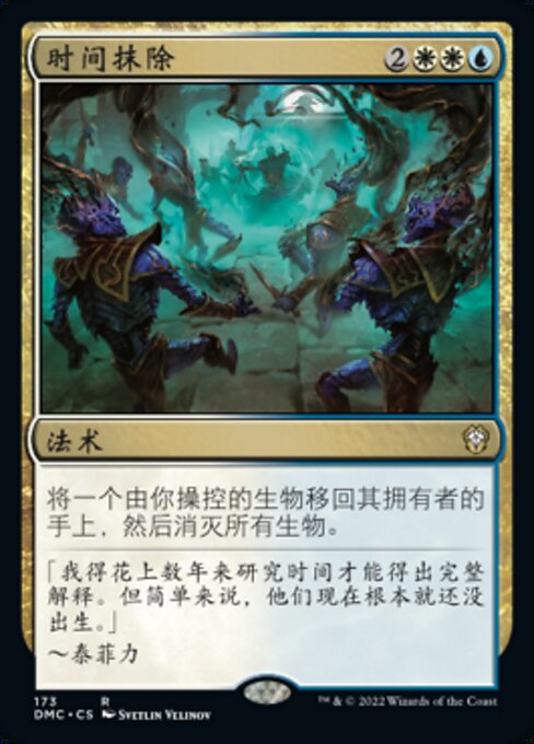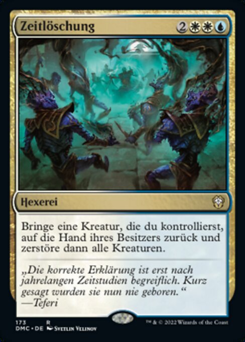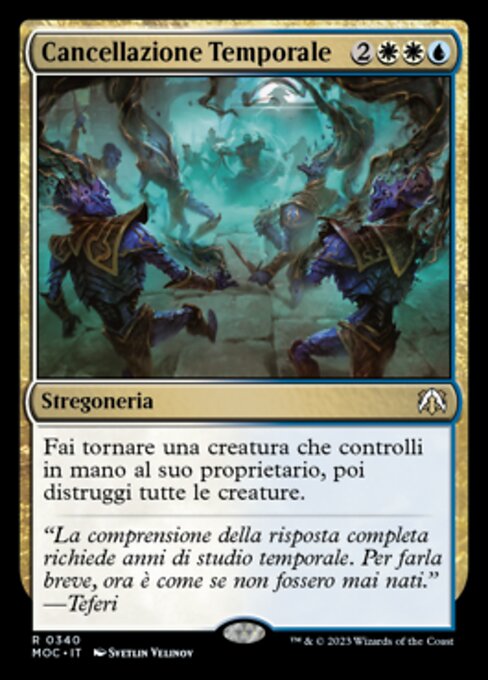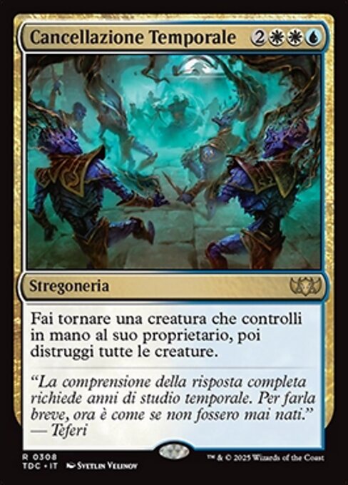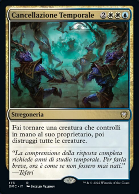 |  Variations— Parts— | Cancellazione TemporaleFai tornare una creatura che controlli in mano al suo proprietario, poi distruggi tutte le creature.