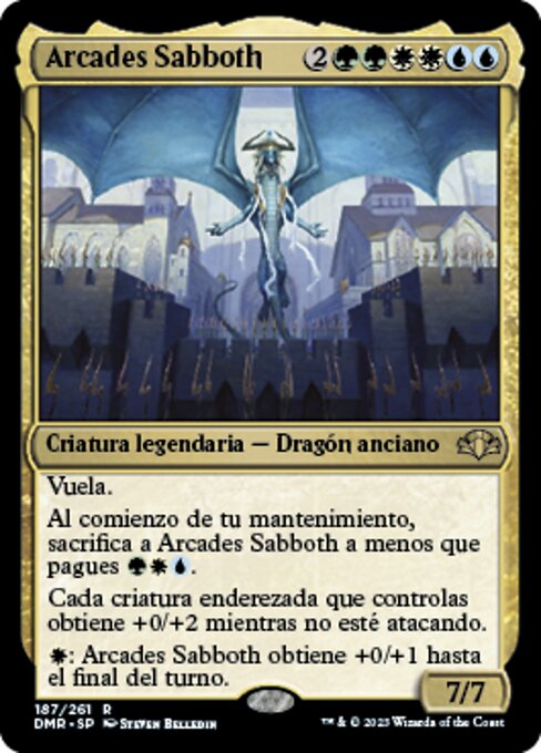 |  Variations : 1Parts— | Arcades Sabboth7 / 7 Flying At the beginning of your upkeep, sacrifice Arcades Sabboth unless you pay Each untapped creature you control gets +0/+2 as long as it's not attacking.