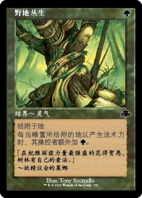 |  Variations : 1Parts— | Végétation luxurianteEnchanter : terrain À chaque fois que le terrain enchanté est engagé pour du mana, son contrôleur ajoute