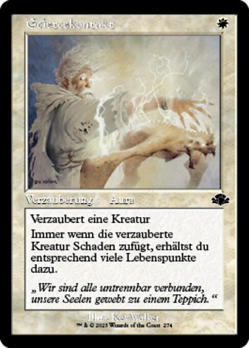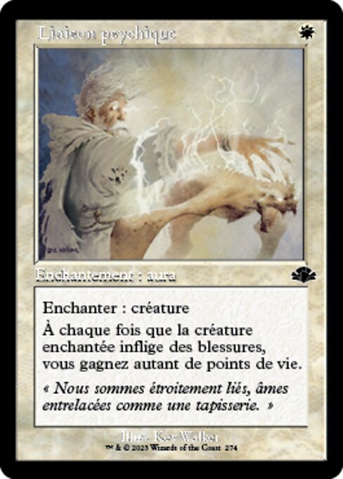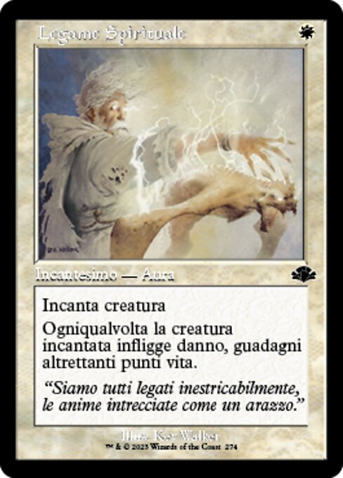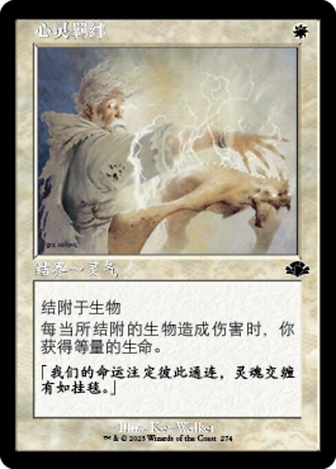 ![]() Variations : 1Parts— | 魂の絆エンチャント(クリーチャー) エンチャントしているクリーチャーがダメージを与えるたび、あなたはそれに等しい点数のライフを得る。